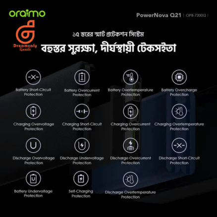 Oraimo PowerNova Q21 পাওয়ার ব্যাংক অসাধারণ! ব্যাটারিতে একাধিকবার চার্জ করা যায়, আর ফাস্ট চার্জিং সত্যিই দ্রুত কাজ করে। বিল্ড কোয়ালিটি মজবুত, ডিজাইনও প্রিমিয়াম। ভ্রমণ বা দৈনন্দিন ব্যবহারে খুবই নির্ভরযোগ্য।